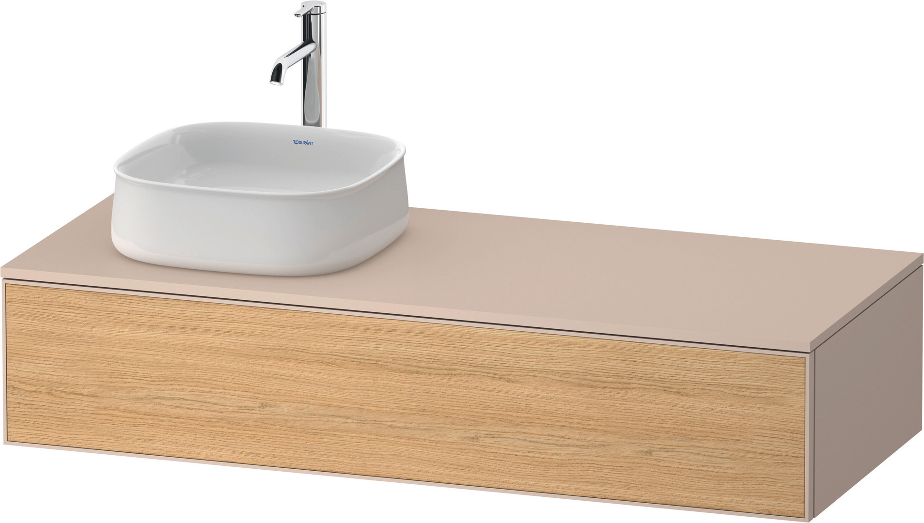 Duravit Waschtisch-Unterschrank Zencha 130x55cm, Becken links, Eiche natur/taupe supermatt, Nussbaum mitte