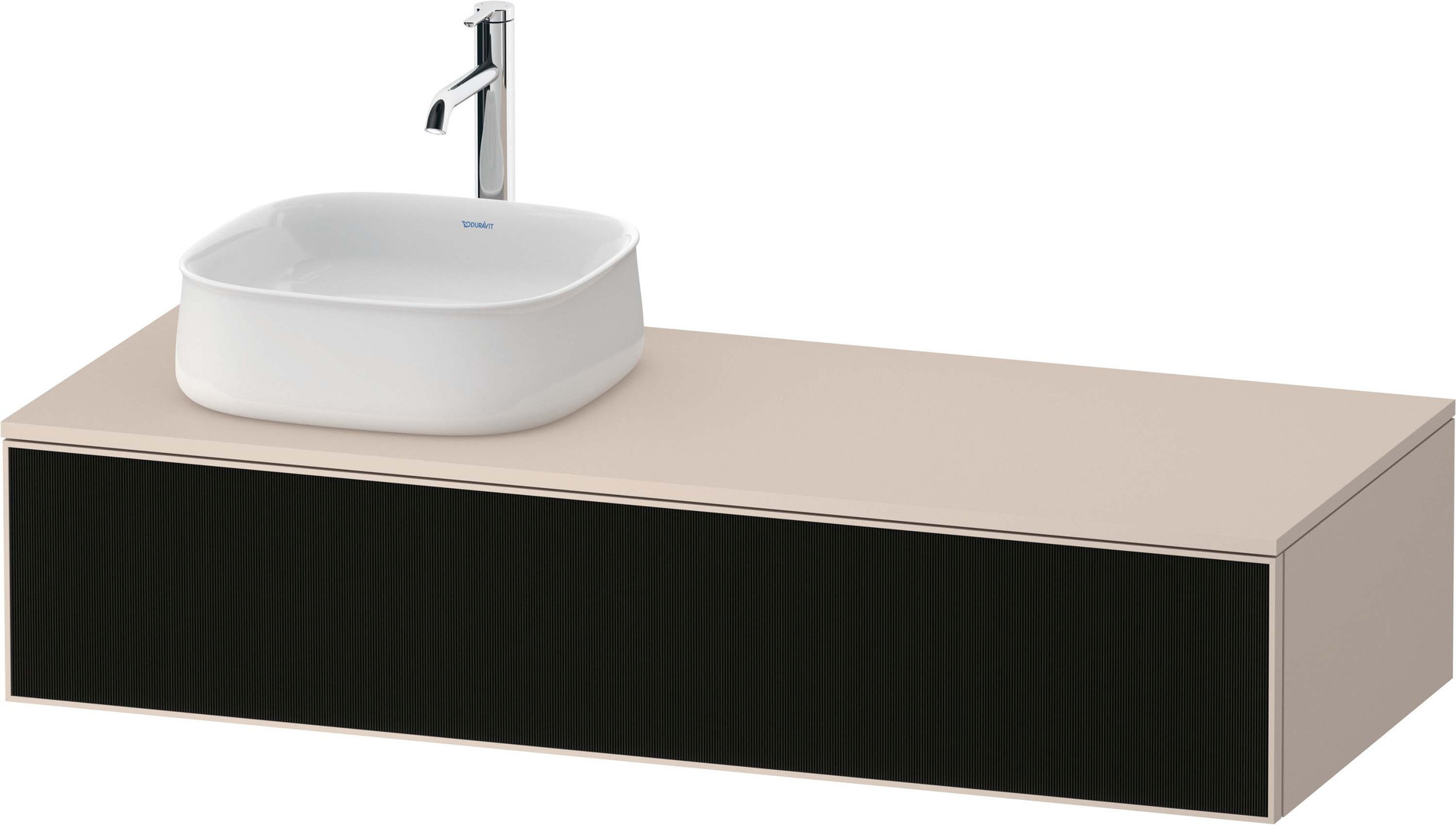Duravit Waschtisch-Unterschrank Zencha 130x55cm, Becken links, Glas schwarz Linienstruktur/taupe supermatt, Nussbaum mitte