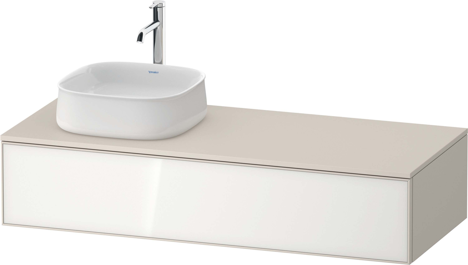 Duravit Waschtisch-Unterschrank Zencha 130x55cm, Becken links, Glas weiß/taupe supermatt, Eiche mitte