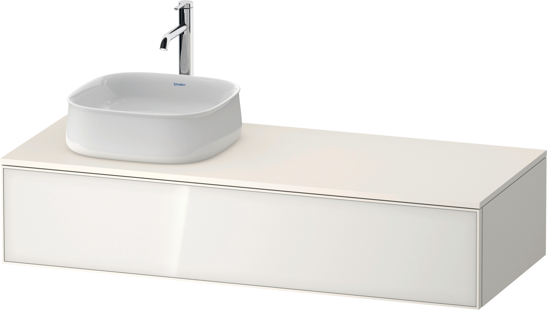 Duravit Waschtisch-Unterschrank Zencha 130x55cm, Becken links, Glas weiß/weiß supermatt, Eiche mitte