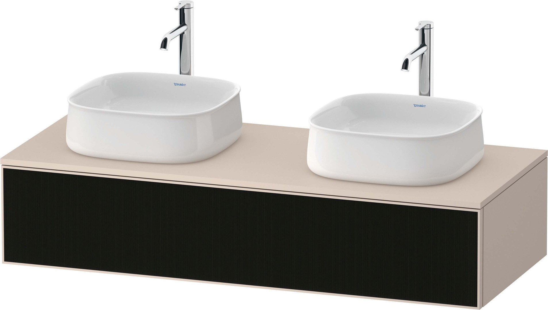 Duravit Waschtisch-Unterschrank Zencha 130x55cm, Becken beidseitig, Glas schwarz Linienstruktur/taupe supermatt, Nussbaum mitte