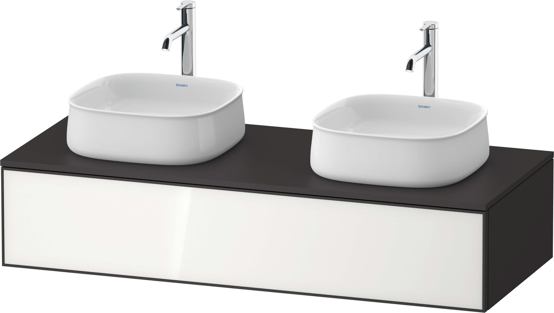 Duravit Waschtisch-Unterschrank Zencha 130x55cm, Becken beidseitig, Glas weiß/graphit supermatt, Eiche mitte
