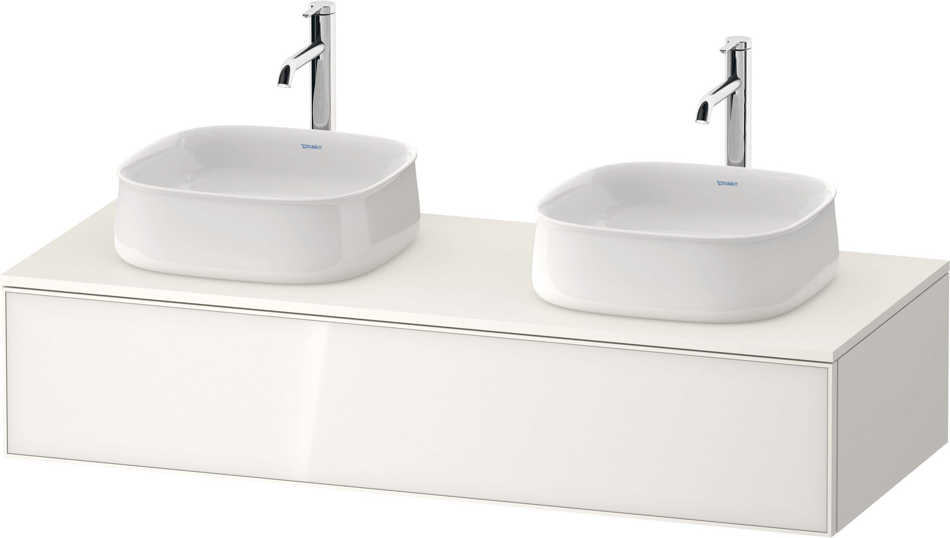 Duravit Waschtisch-Unterschrank Zencha 130x55cm, Becken beidseitig, Glas weiß/weiß supermatt, Eiche mitte