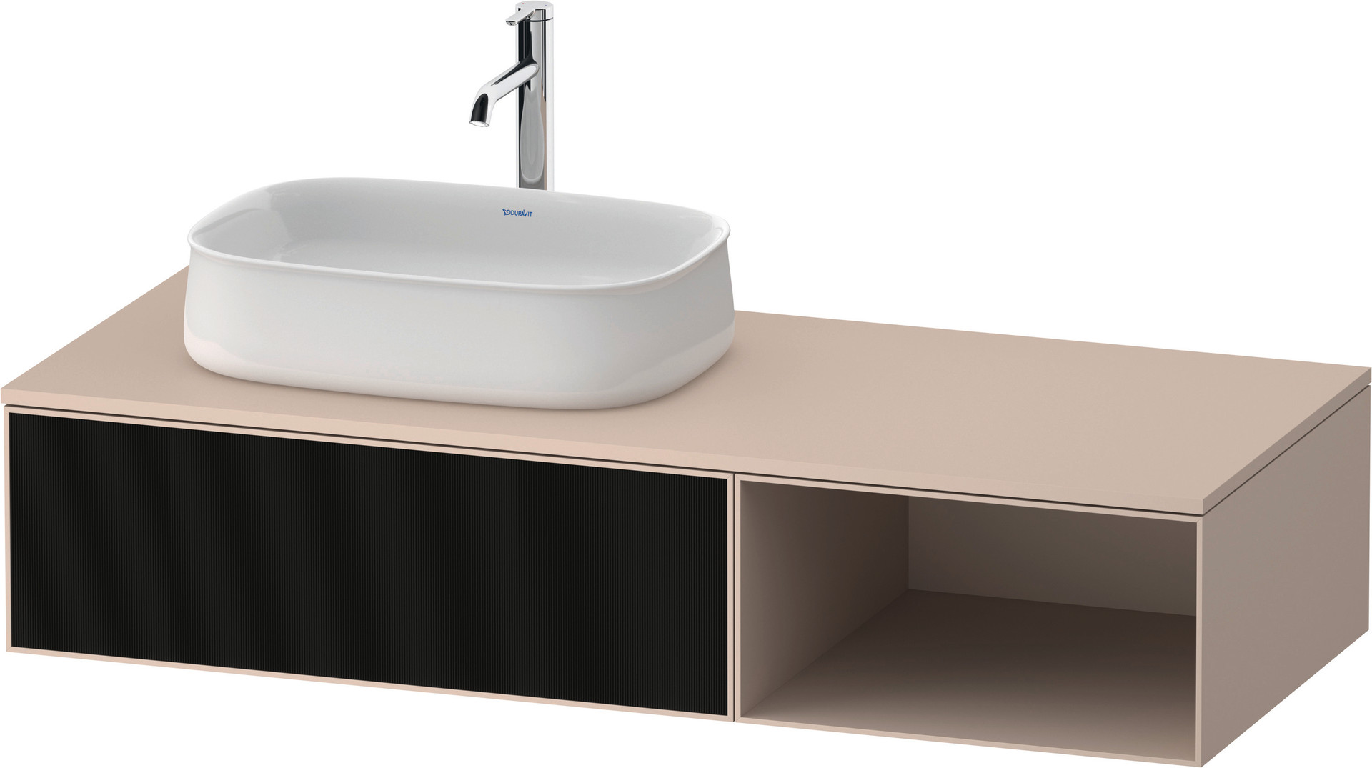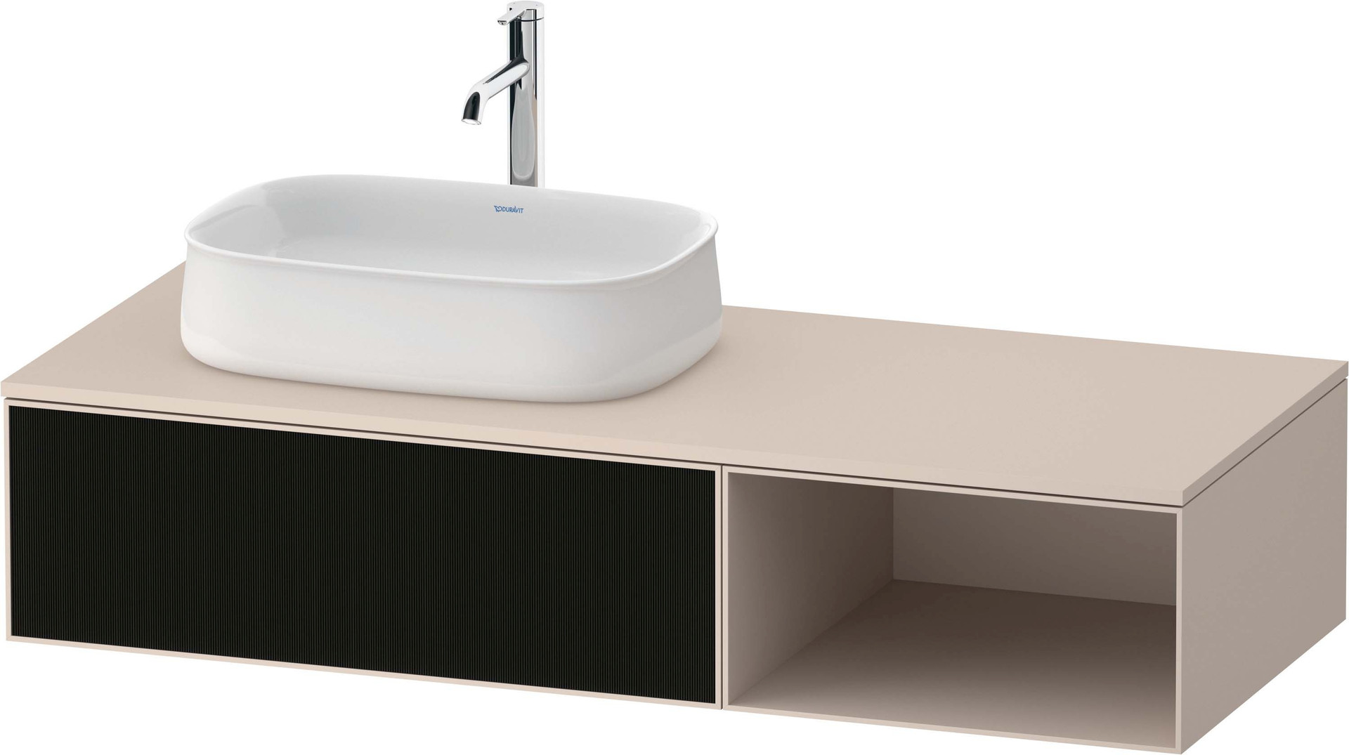 Duravit Waschtisch-Unterschrank Zencha 130x55cm, Becken links, Glas schwarz Linienstruktur/taupe supermatt, Eiche links