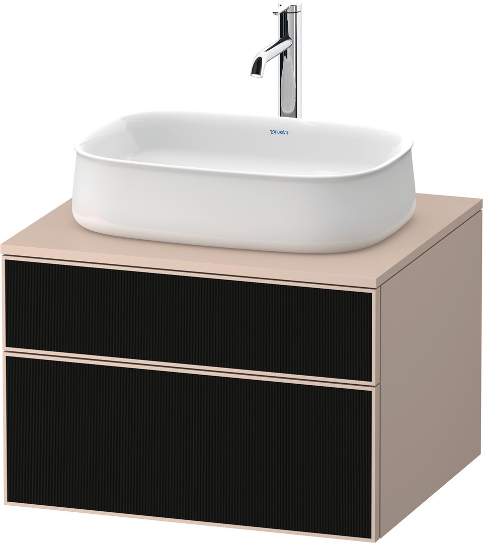 Duravit Waschtisch-Unterschrank Zencha 65x55cm, 1 Schubkasten, Glas schwarz Linienstruktur/taupe supermatt, Nussbaum mitte