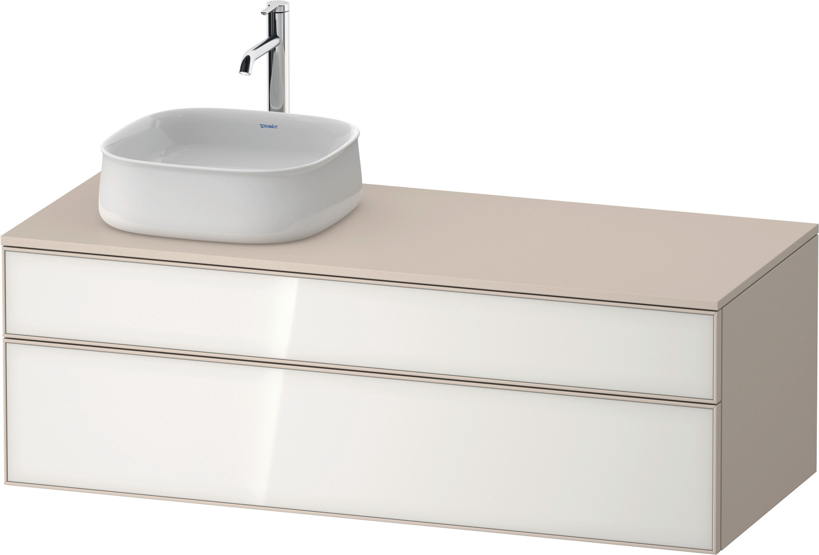 Duravit Waschtisch-Unterschrank Zencha 130x55cm, Becken links, Glas weiß/taupe supermatt, Eiche mitte