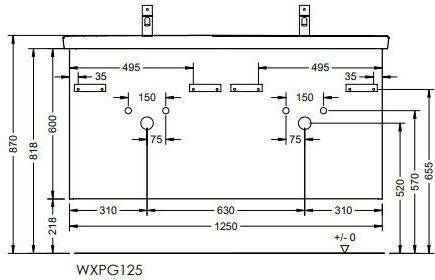 Burgbad Nurro Pure Waschtisch-Unterschrank 60x125x45cm, 2 Schubladen/2 Auszüge, Weiß Hochglanz EX18452780001