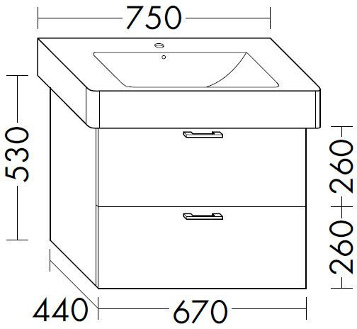 Schublade oben, mit Siphonausschnitt, Tiefe 350 mm, Auszug unten, Tiefe 350 mm