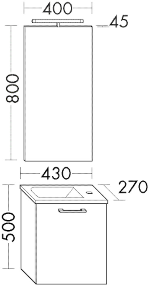 LED-Beleuchtung, 4,4 Watt, Korpus: Alu-Optik, Waschtisch: Muldentiefe: 100 mm, Beckenmaß 304 x 230 mm