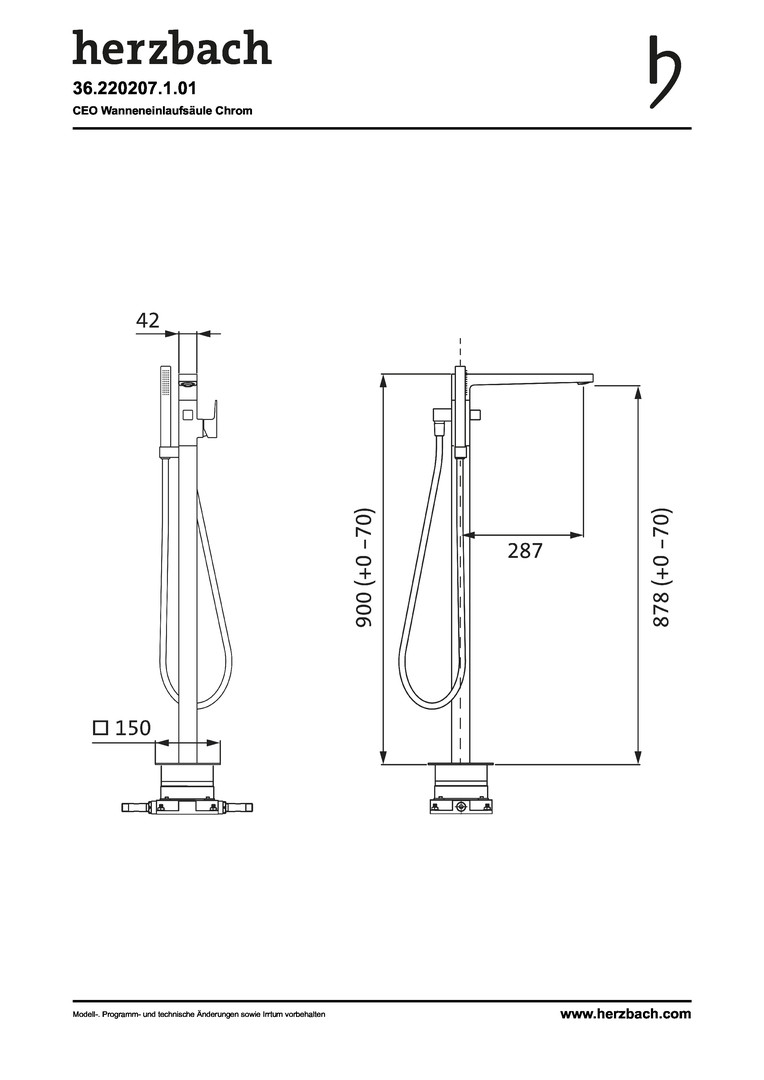Herzbach Fertigmontageset Ceo Wanneneinlaufsäule, bodenstehend, mit Brausegarnitur, chrom HF36220207101