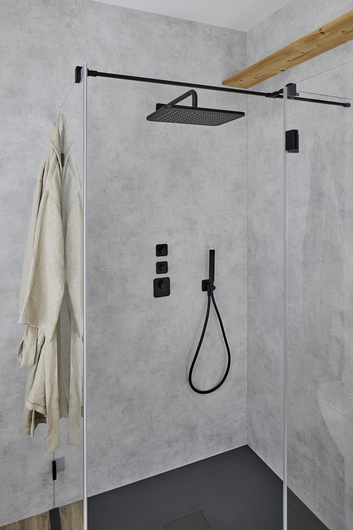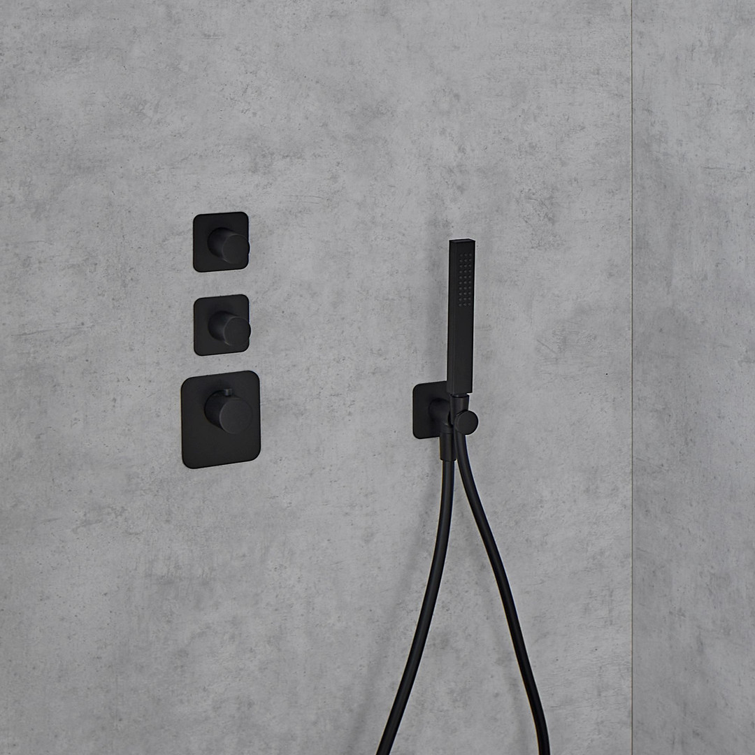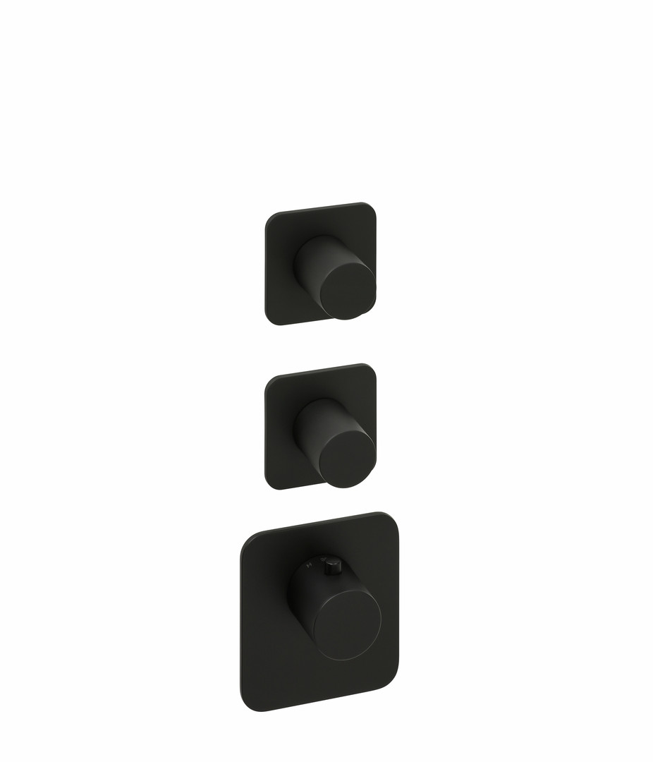 Herzbach Fertigmontageset Logic XL 2 Thermostat-Modul, 3 Blenden soft, Griffe rund, schwarz matt