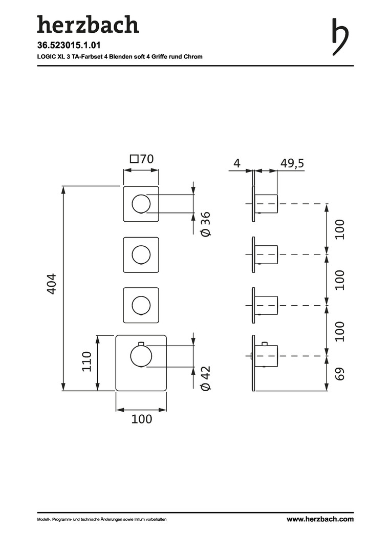 Herzbach Fertigmontageset Logic XL 3 Thermostat-Modul, 4 Blenden soft, Griffe rund, chrom HF36523015101