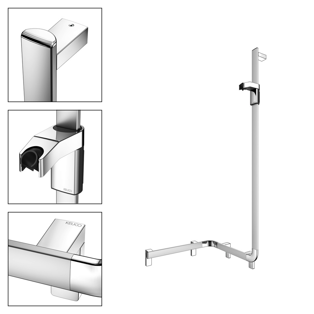 KEUCO Duschhandlauf AXESS Care 850 mm, verchromt, mit seitlicher Brausestange, rechts KE35008018601