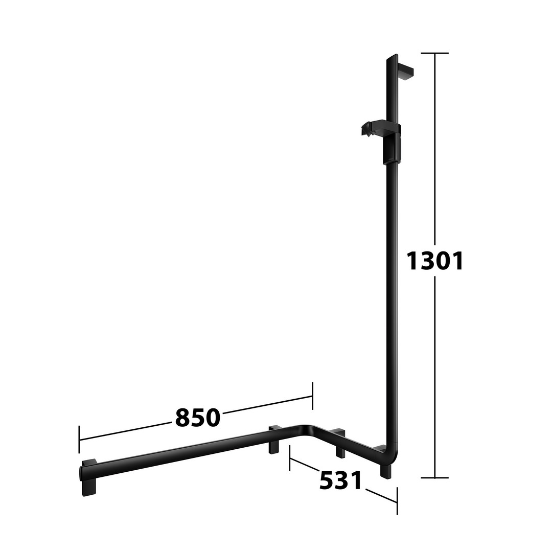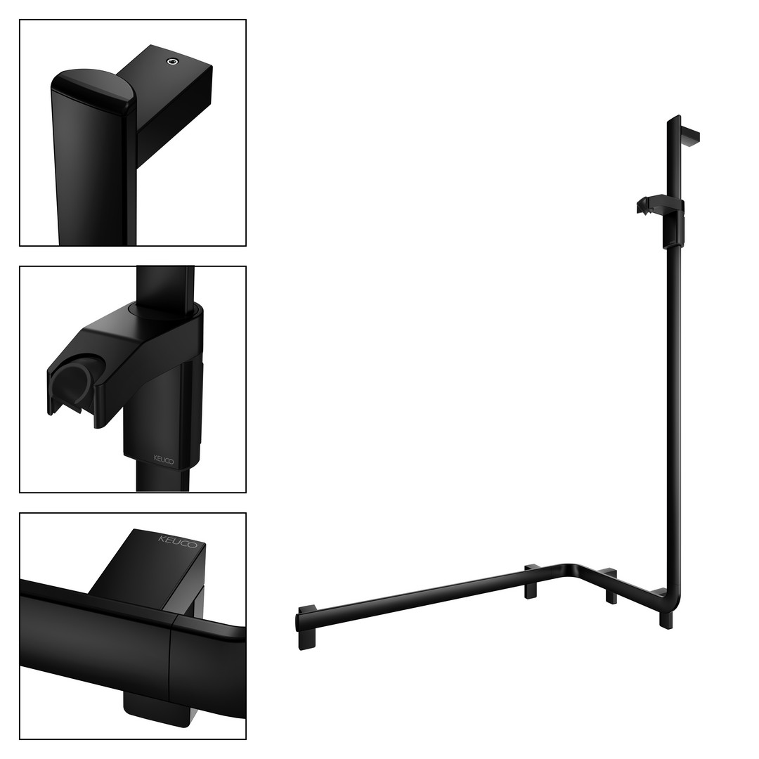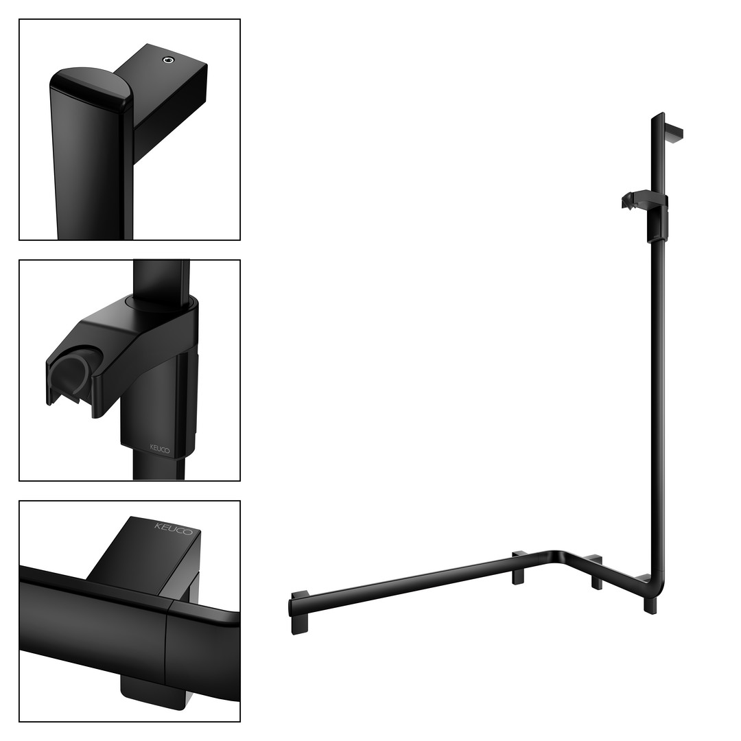 KEUCO Duschhandlauf AXESS Care 850 mm, schwarz matt, mit seitlicher Brausestange, rechts