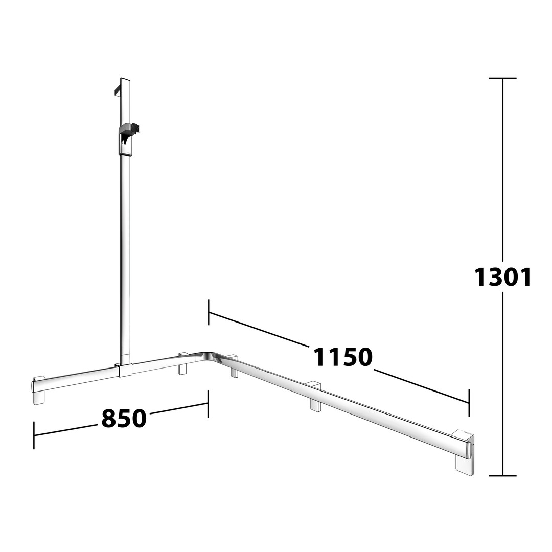 KEUCO Duschhandlauf AXESS Care 850 x 850 x 1301 mm, verchromt, mit Brausestange, links KE35015010102