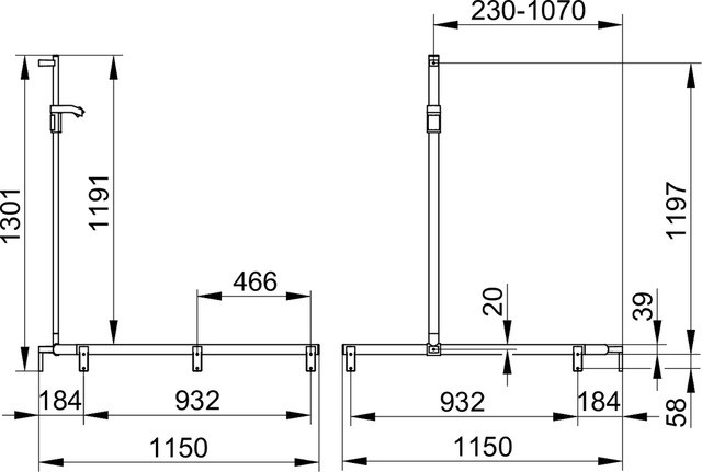 Belastbarkeit bis 115 kg, Brauseschieber für Schläuche mit konischer Mutter, Brausehalter Position vorne, Neigungswinkel Brausehalter verstellbar, zum Schrauben, 4x Befestigungs-Set 1 (349 90 00 01 00), weitere Befestigungs-Sets (4x je nach Ankergrund/Mauerwerk) sind separat zu bestellen