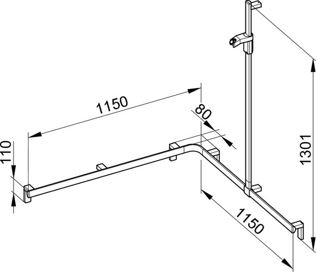 KEUCO Duschhandlauf AXESS Care 1150x 1150 x 1301 mm, verchromt, mit Brausestange, rechts