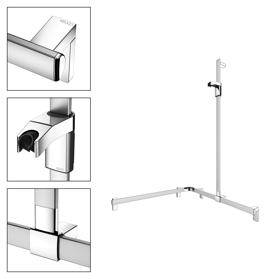 KEUCO Duschhandlauf AXESS Care 850 x 850 x 1301 mm, verchromt, mit Brausestange, rechts KE35015010101