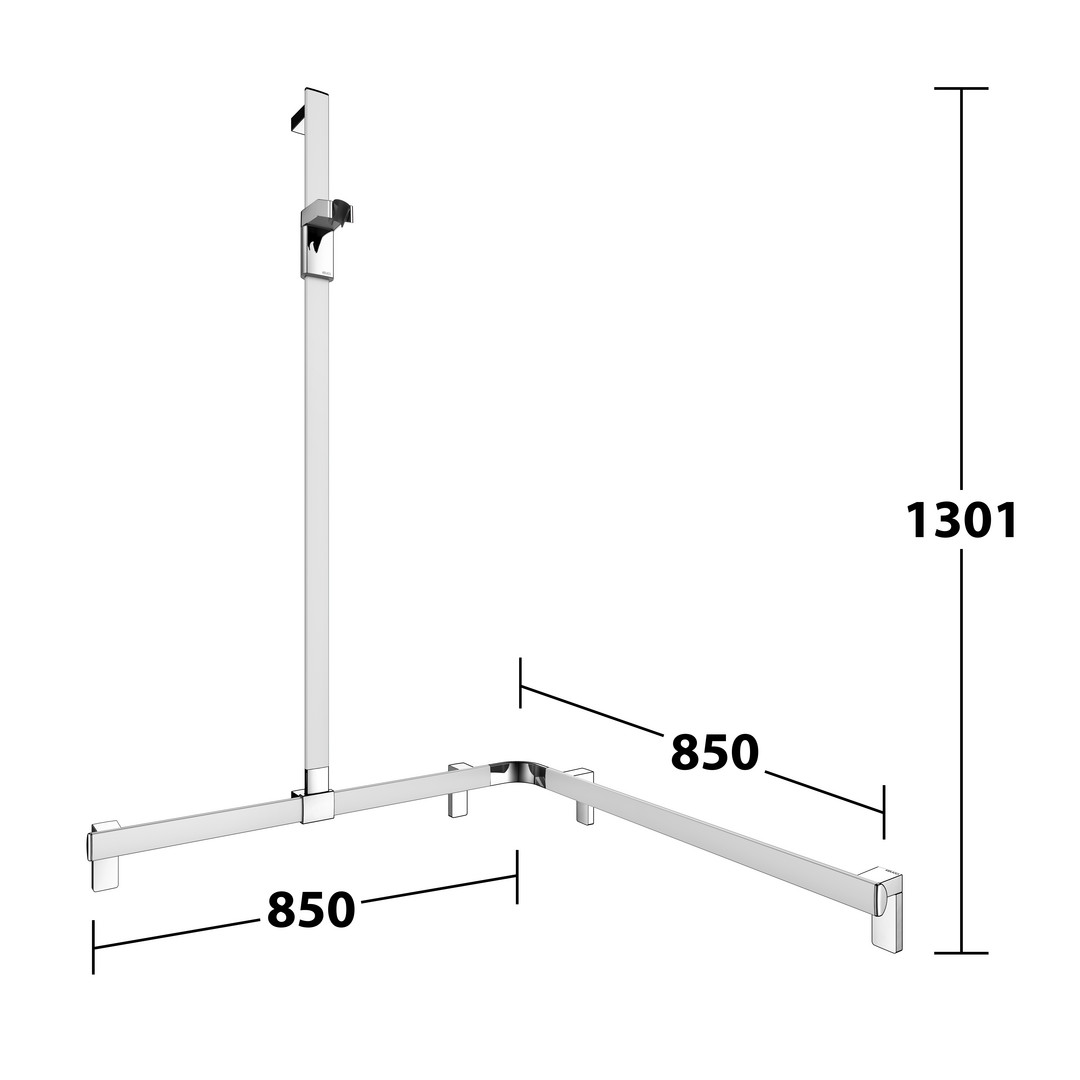 KEUCO Duschhandlauf AXESS Care 850 x 850 x 1301 mm, verchromt, mit Brausestange, links KE35015010102