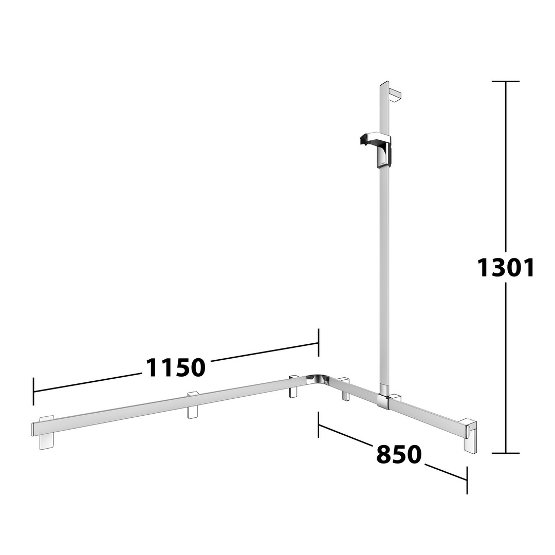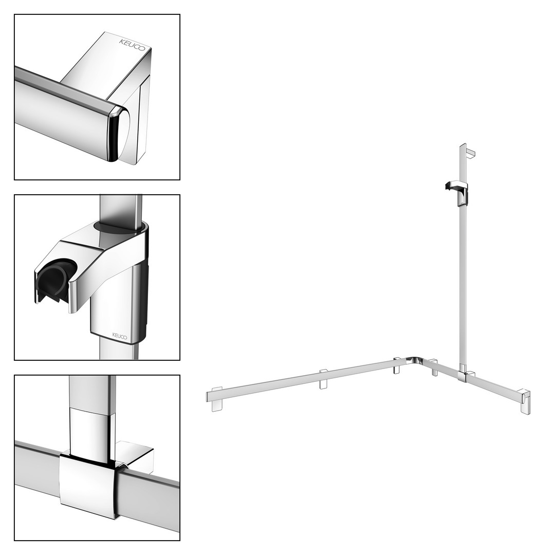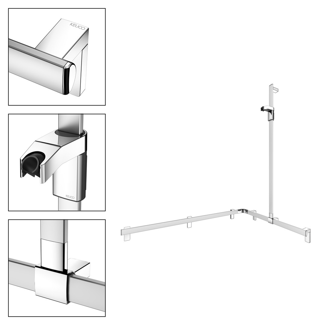 KEUCO Duschhandlauf AXESS Care 850 x 850 x 1301 mm, verchromt, mit Brausestange, rechts KE35015010101