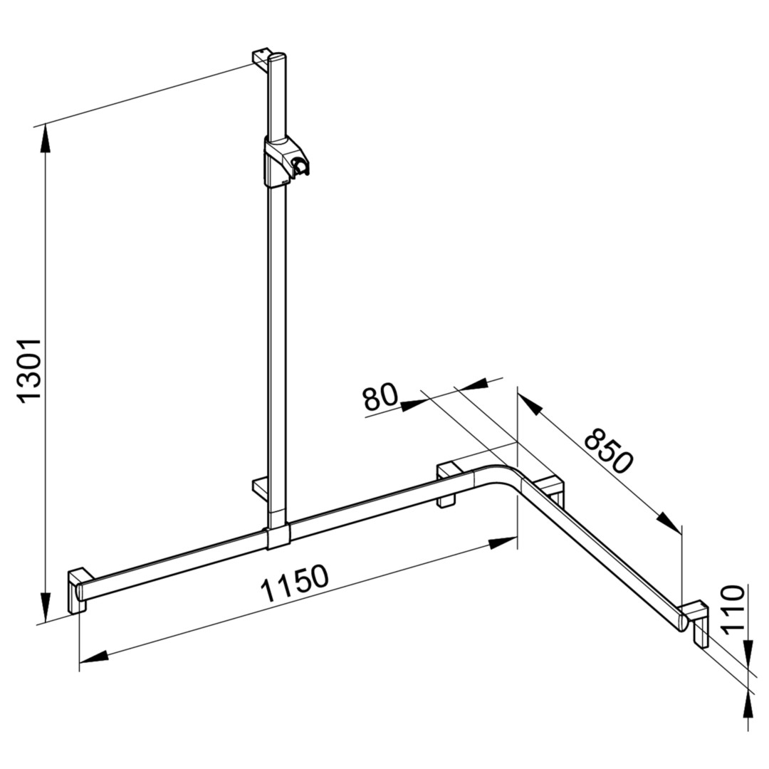KEUCO Duschhandlauf AXESS Care 850 x 1150 x 1301 mm, verchromt, mit Brausestange, links KE35015010202