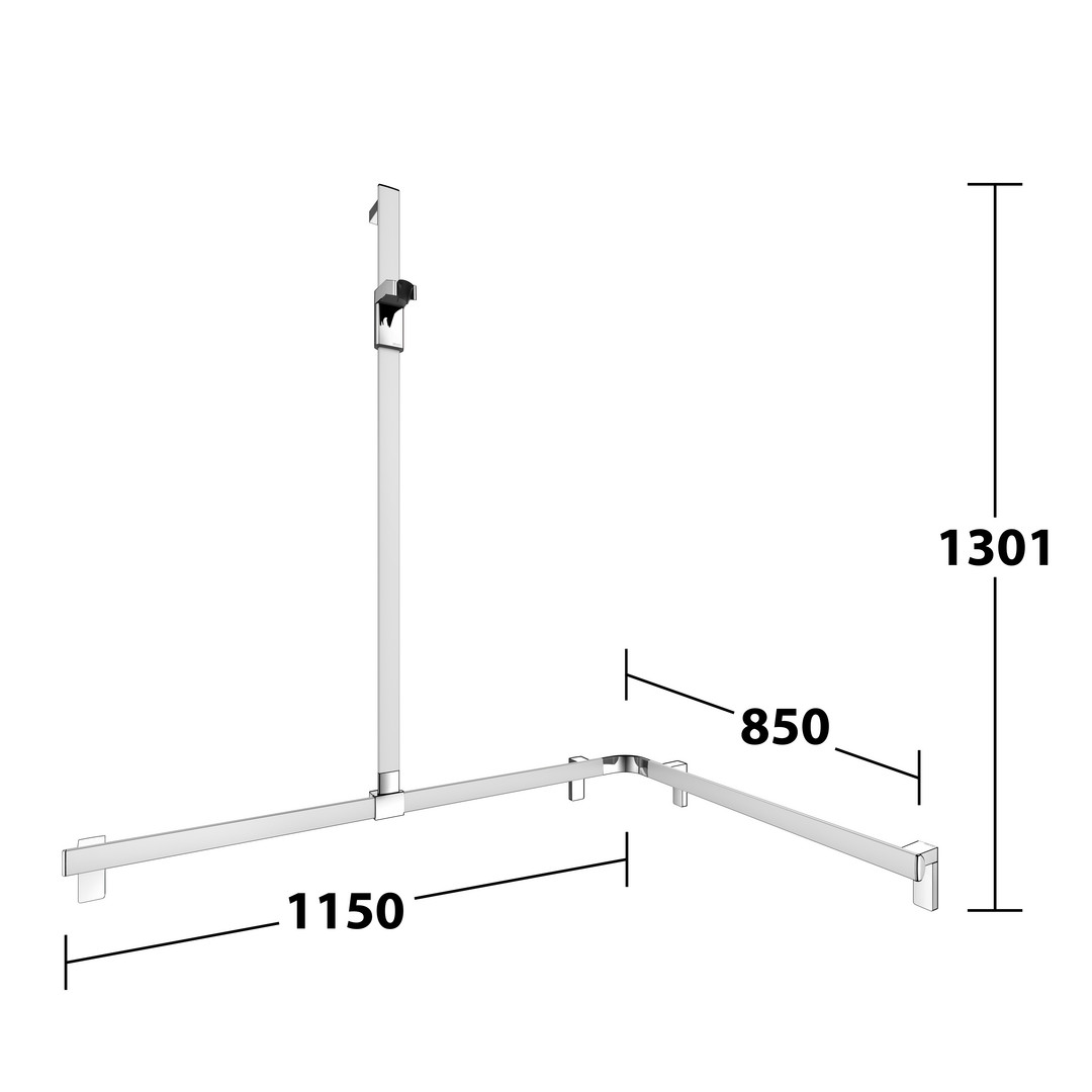 KEUCO Duschhandlauf AXESS Care 850 x 850 x 1301 mm, verchromt, mit Brausestange, links KE35015010102