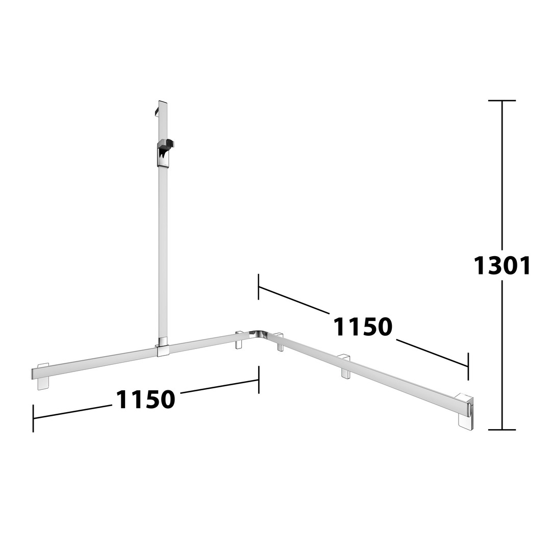 KEUCO Duschhandlauf AXESS Care 850 x 850 x 1301 mm, verchromt, mit Brausestange, links KE35015010102