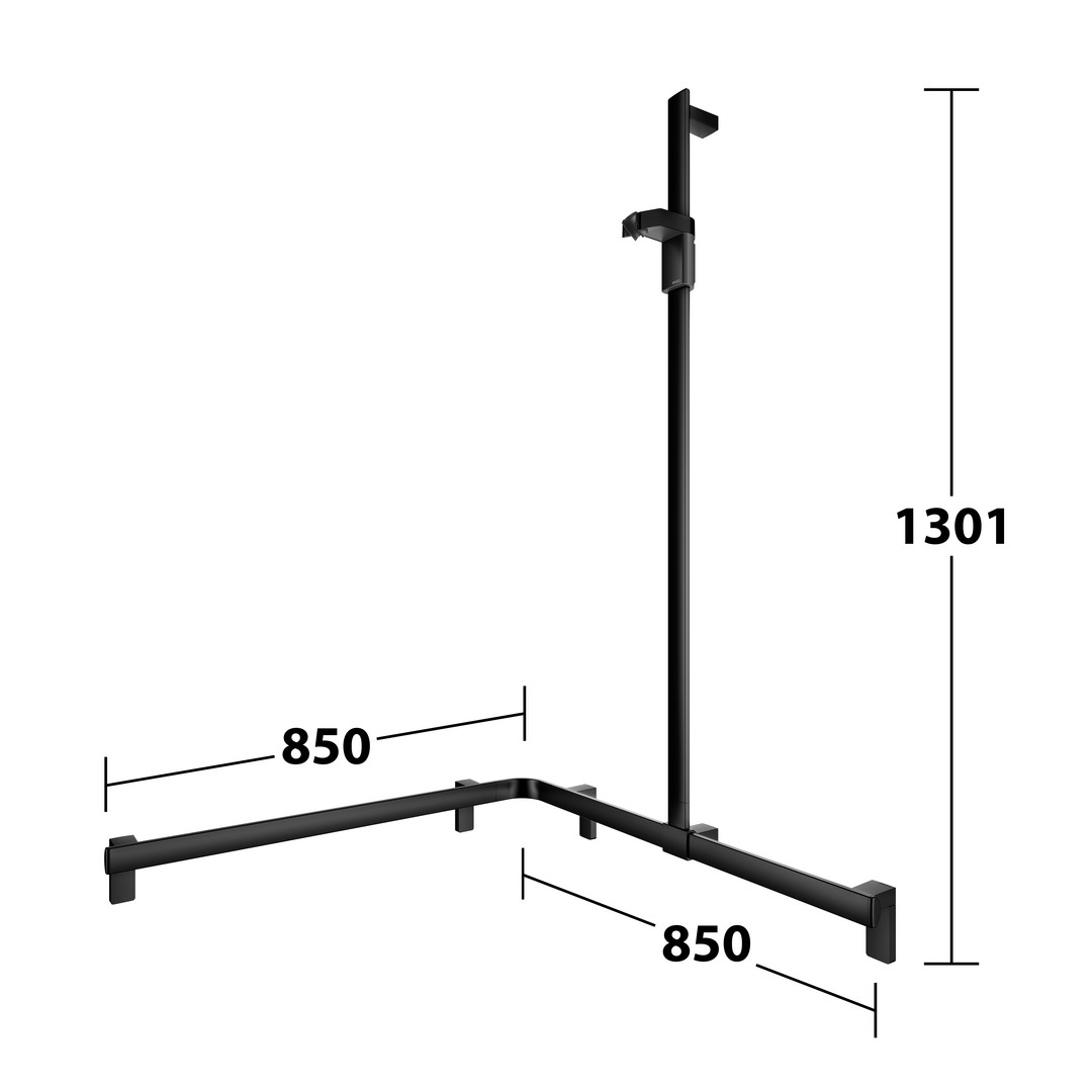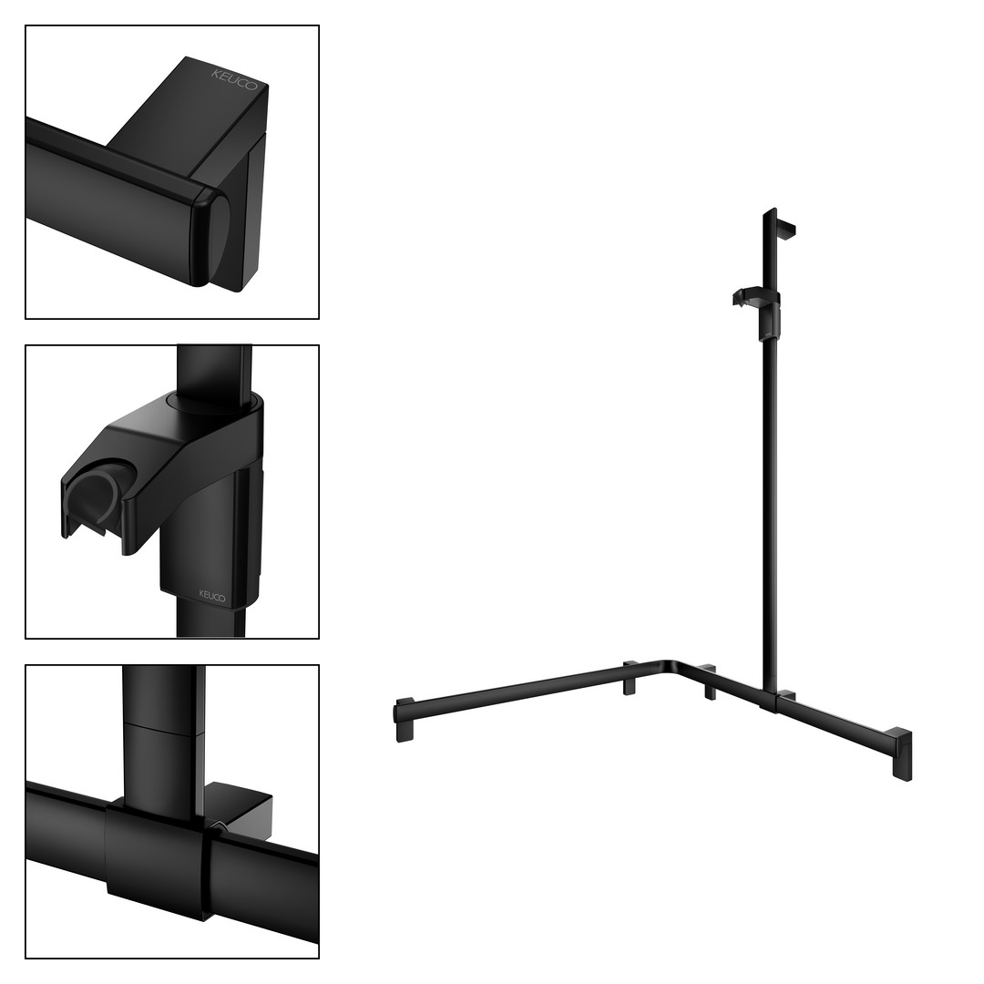 KEUCO Duschhandlauf AXESS Care 850 x 850 x 1301 mm, schwarz matt, mit Brausestange, rechts KE35015370101