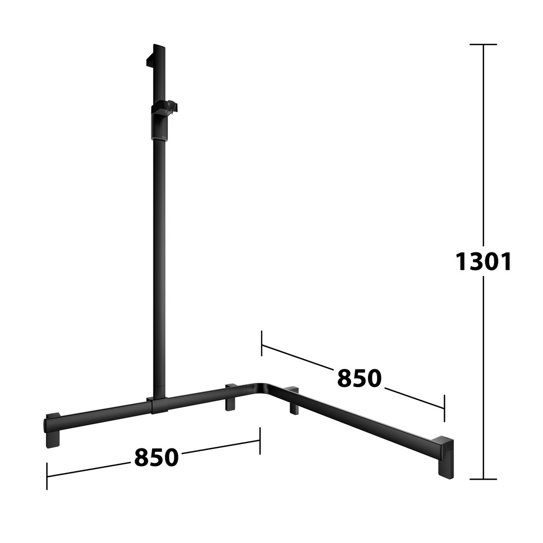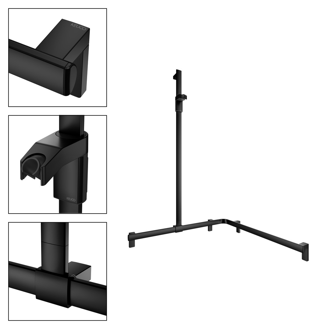 KEUCO Duschhandlauf AXESS Care 850 x 850 x 1301 mm, schwarz matt, mit Brausestange, links KE35015370102