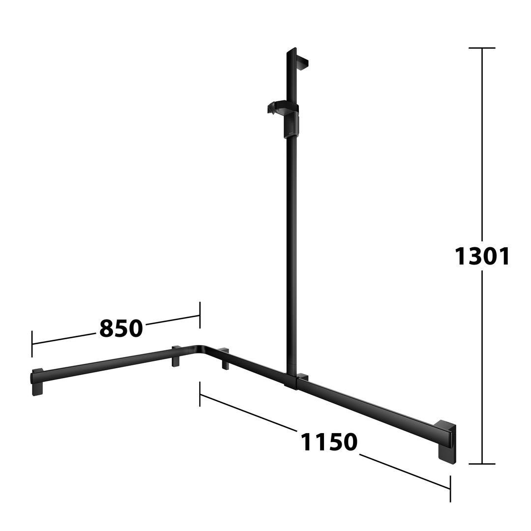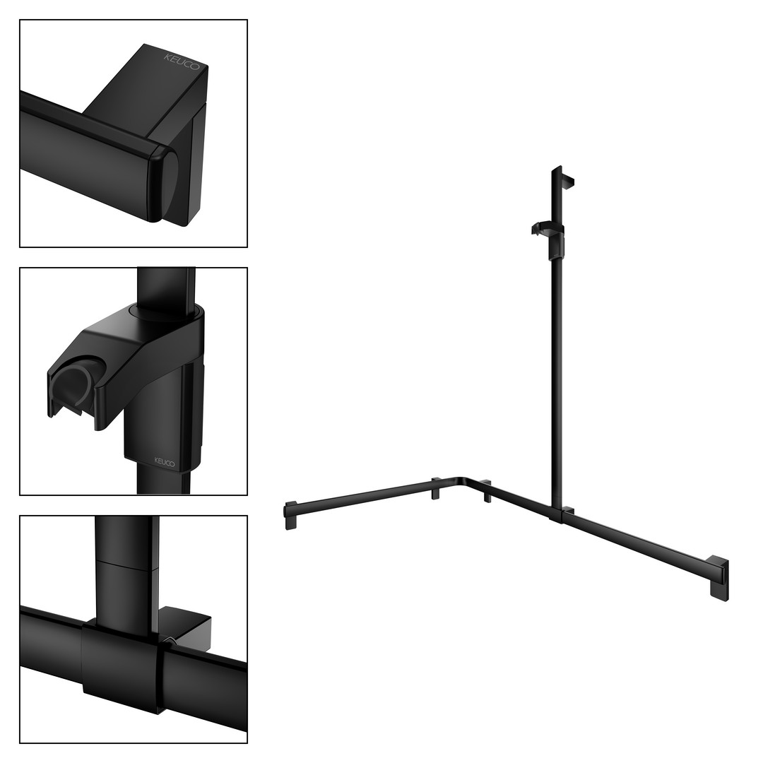 KEUCO Duschhandlauf AXESS Care 850 x 850 x 1301 mm, schwarz matt, mit Brausestange, rechts KE35015370101