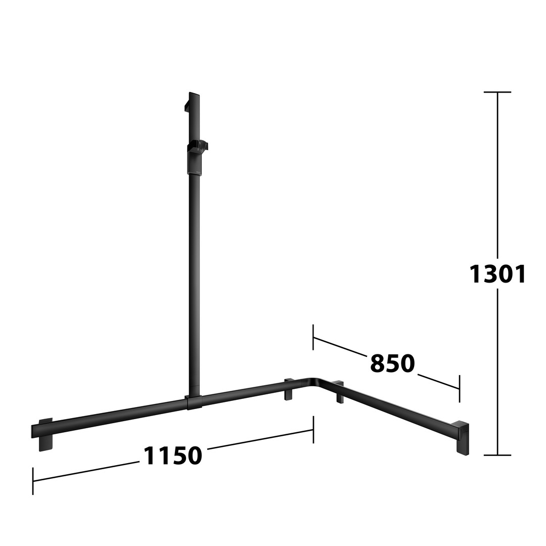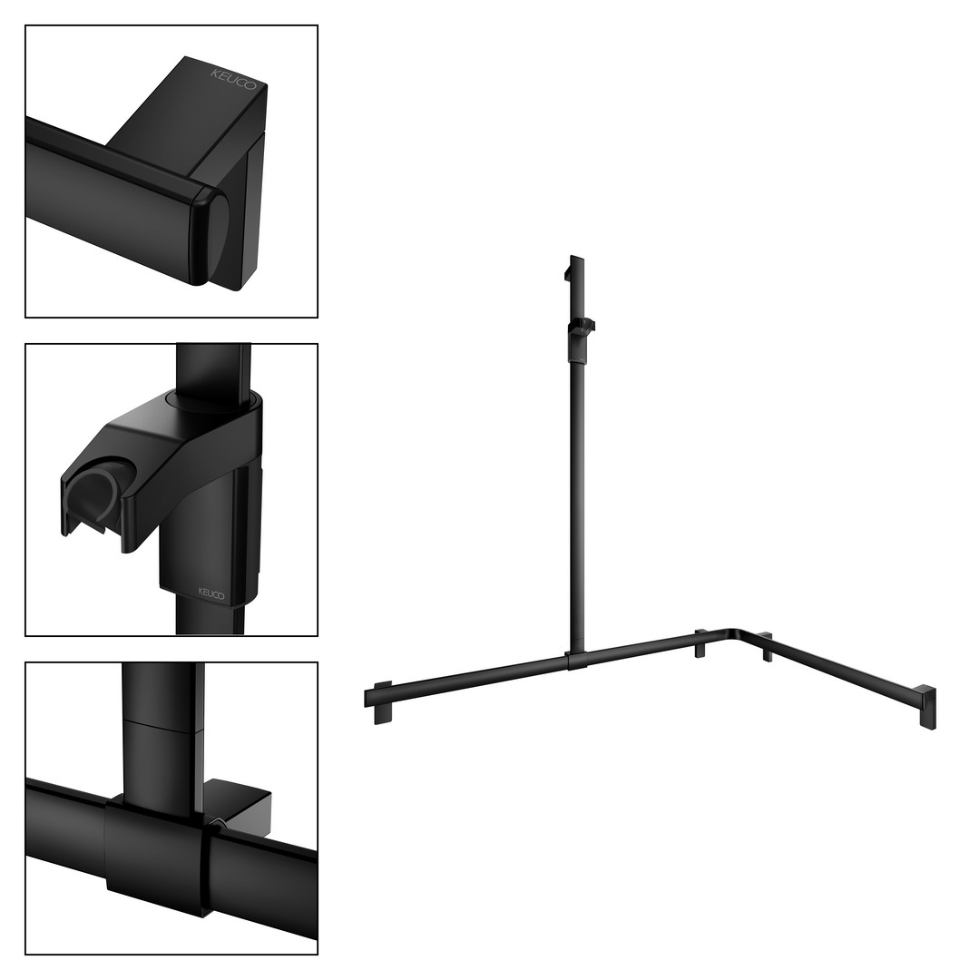 KEUCO Duschhandlauf AXESS Care 850 x 850 x 1301 mm, schwarz matt, mit Brausestange, links KE35015370102