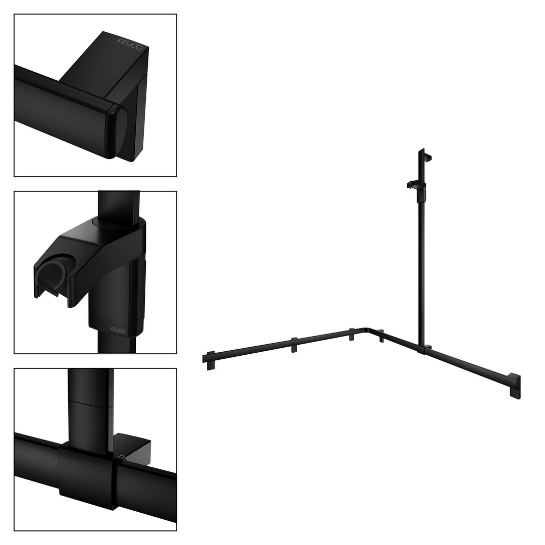 KEUCO Duschhandlauf AXESS Care 850 x 850 x 1301 mm, schwarz matt, mit Brausestange, rechts KE35015370101