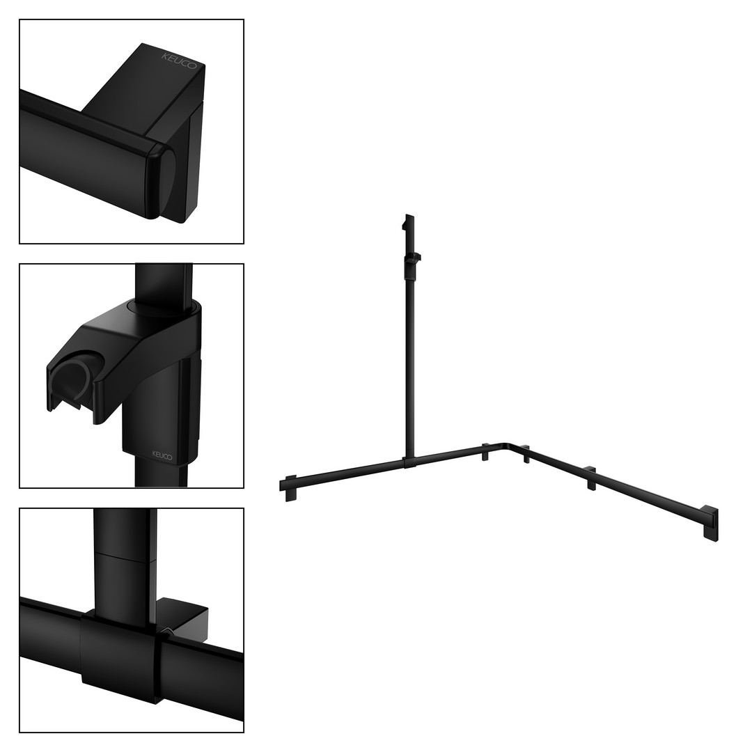 KEUCO Duschhandlauf AXESS Care 850 x 850 x 1301 mm, schwarz matt, mit Brausestange, links KE35015370102