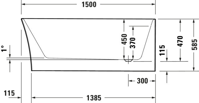 Duravit Badewanne oval DuraSenja 150x75x58,5cm, weiß, Vorwand, RS 2, mit FG+AÜL 700578000000000