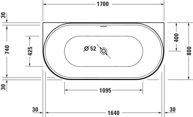 Duravit Badewanne oval DuraSenja 170x80x58,5cm, weiß, Vorwand, RS 2, mit FG+AÜL 700582000000000