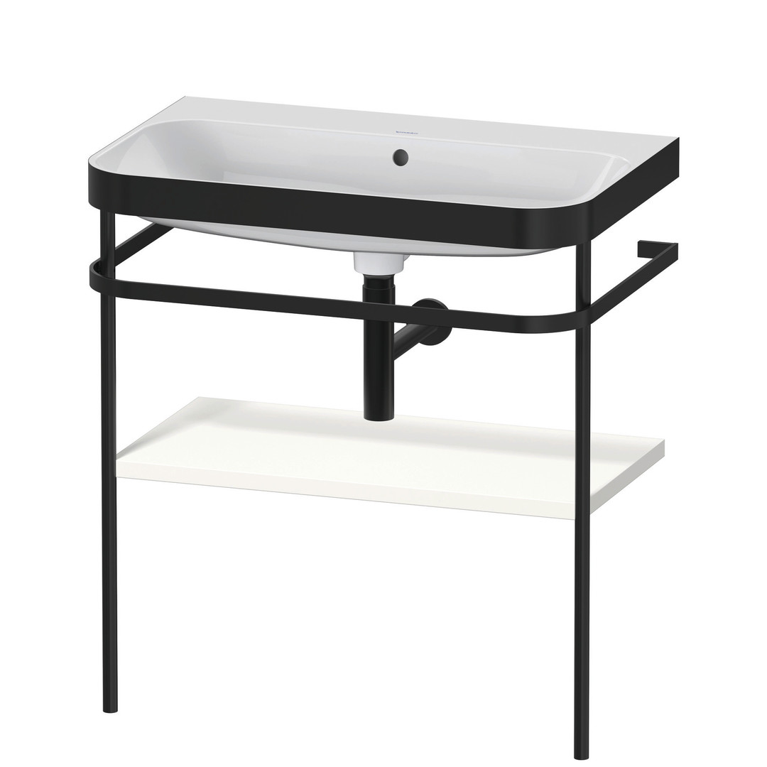 Duravit Möbelwaschtisch-Kombination Happy D.2 Plus 77,5 x 49 cm, ohne Hahnloch, weiß supermatt, mit Metallkonsole