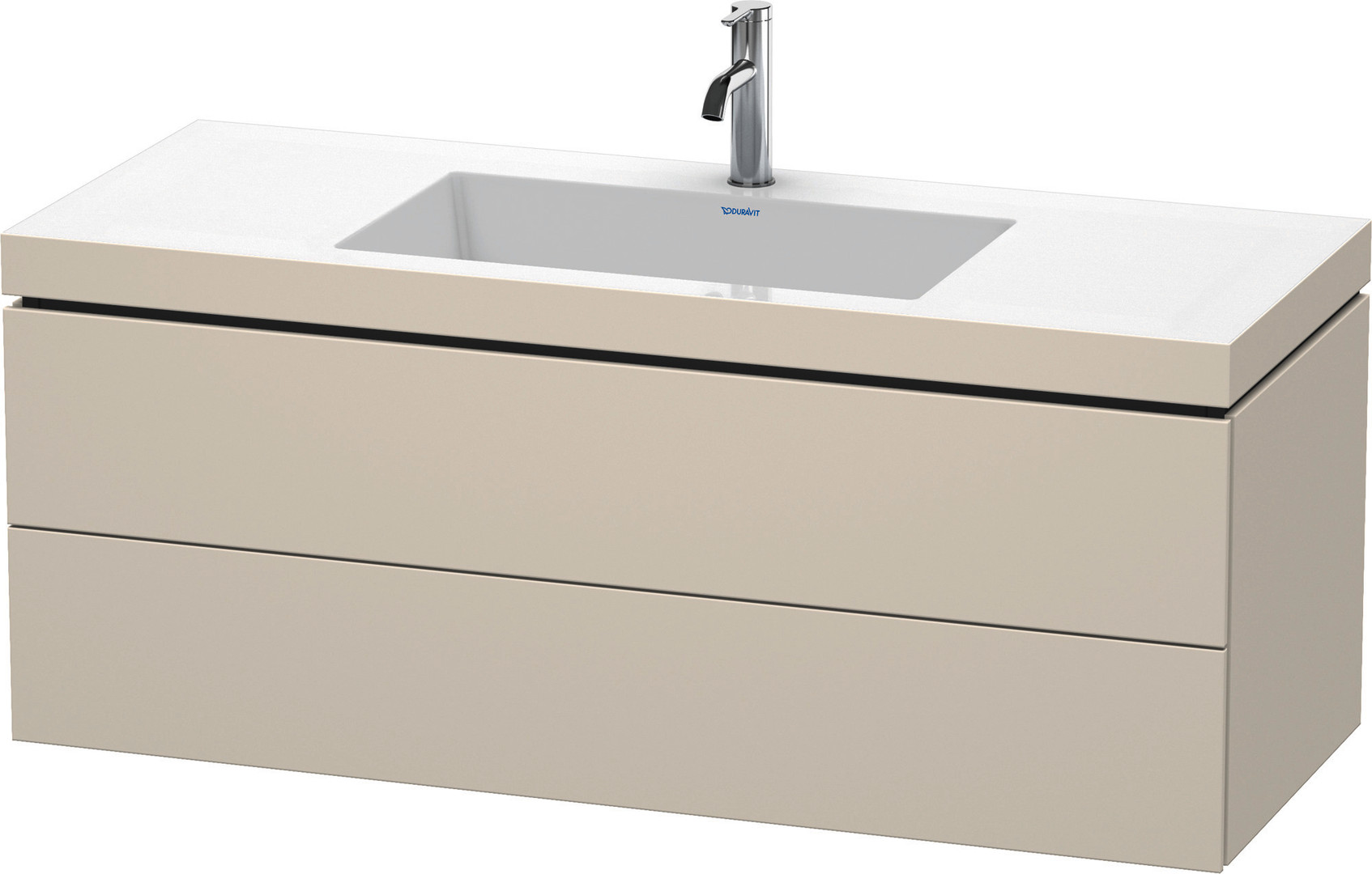 Duravit Waschtisch-Unterschrank c-bonded L-Cube 120 x 48 cm, 1 Hahnloch, taupe supermatt, 2 Schubkästen, wandhängend