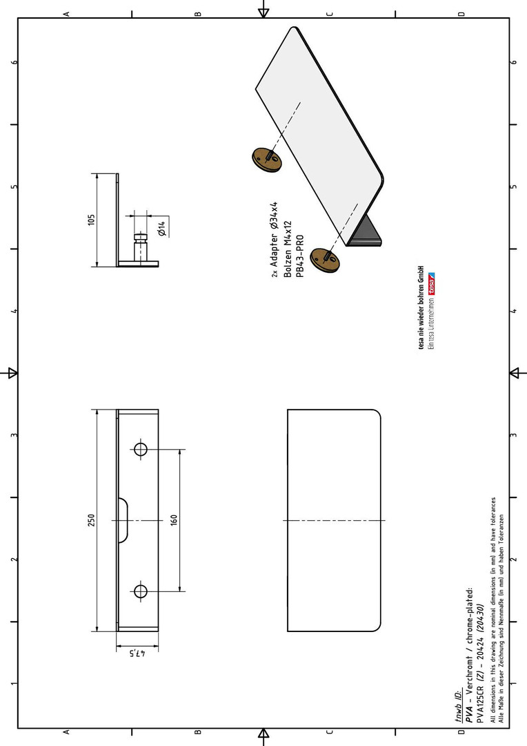 nie wieder bohren Ablage PRO VA 125CR, 250 x 48 x 105 mm, Edelstahl, hochglanzverchromt NBPVA125CR