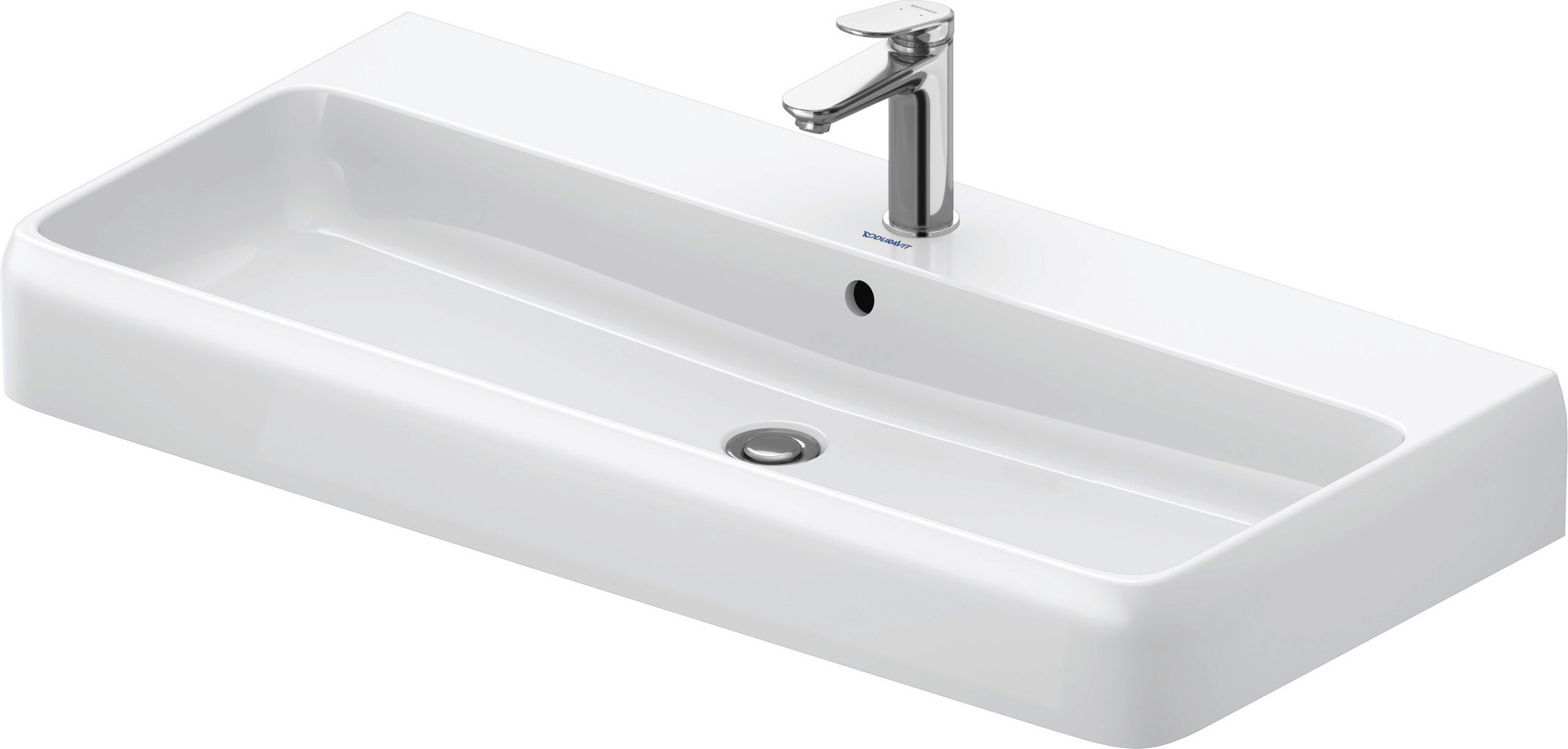 Duravit Aufsatz-Waschtisch Qatego 100 x 47 cm, weiß Hochglanz HygieneGlaze, mit Hahnloch, Überlauf, Hahnlochbank, geschliffen