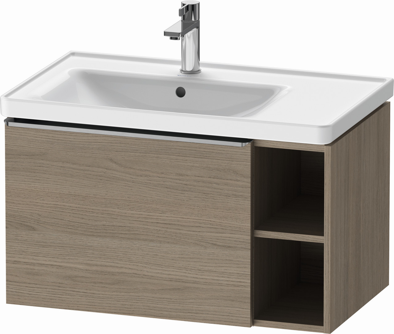 Duravit Waschtisch-Unterschrank D-Neo 78,4x45,2cm, 1 Auszug, Becken links, Edelstahl gebürstet/Eiche Terra