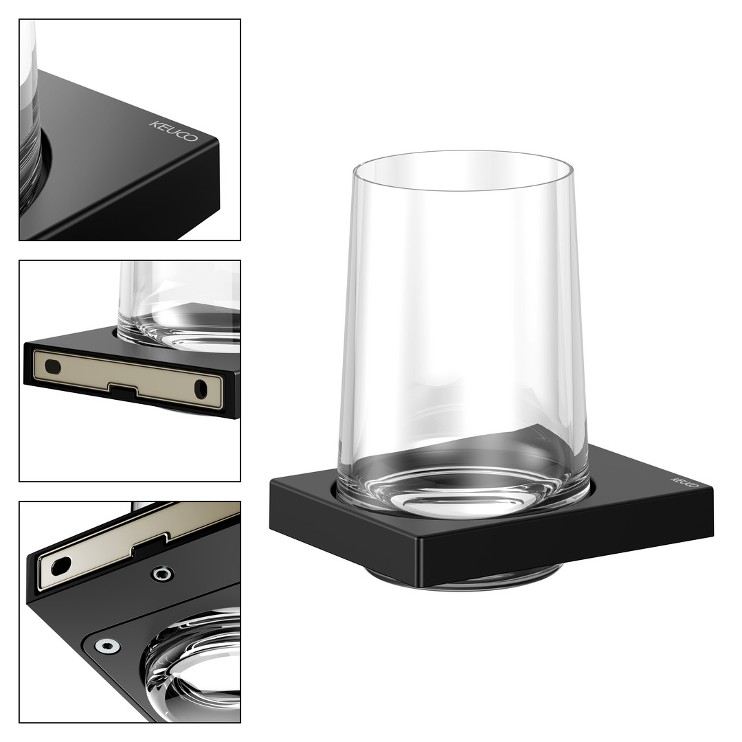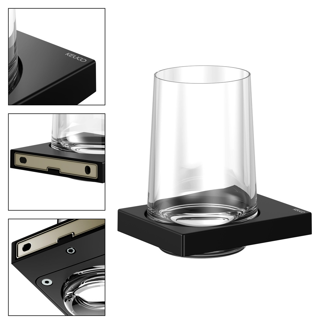 KEUCO Glashalter Edition 11 mit Echtkristall-Glas und Halter, schwarz matt