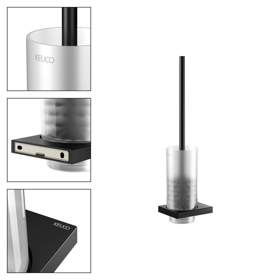 KEUCO Toilettenbürstengarnitur Edition 11 abnehmbares Glas, Echtkristall-Glas mattiert, schwarz matt KE11164379000