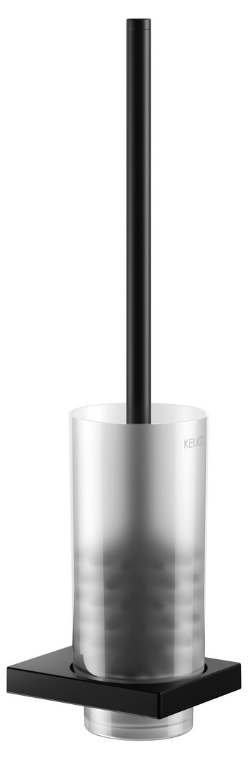 KEUCO Toilettenbürstengarnitur Edition 11 abnehmbares Glas, Echtkristall-Glas mattiert, schwarzchrom gebürstet KE11164139000