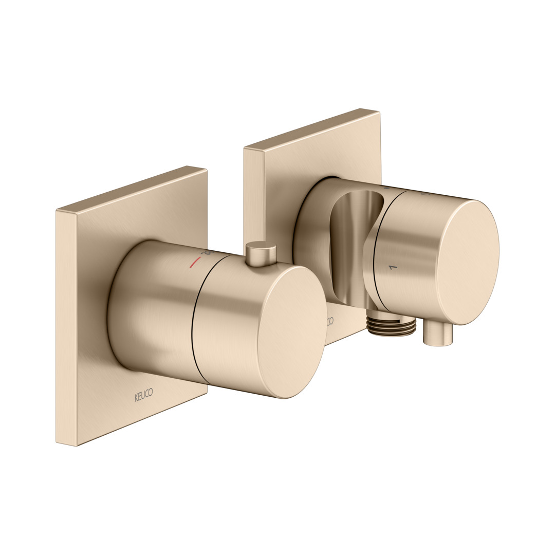 KEUCO Fertigmontageset Edition 11 UP-Thermostatarmatur, mit Schlauchanschluss, Brausehalter, für 2 Verbraucher, bronze gebürstet