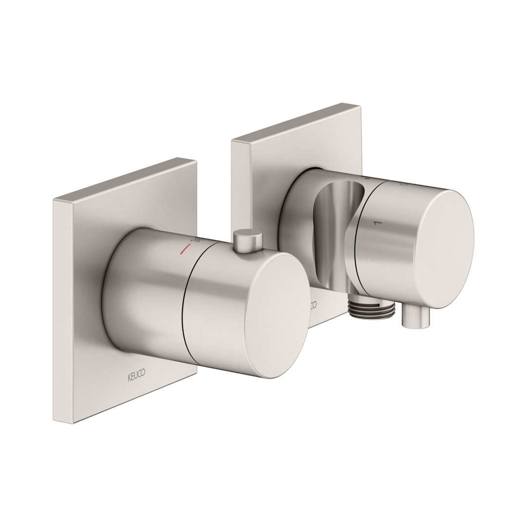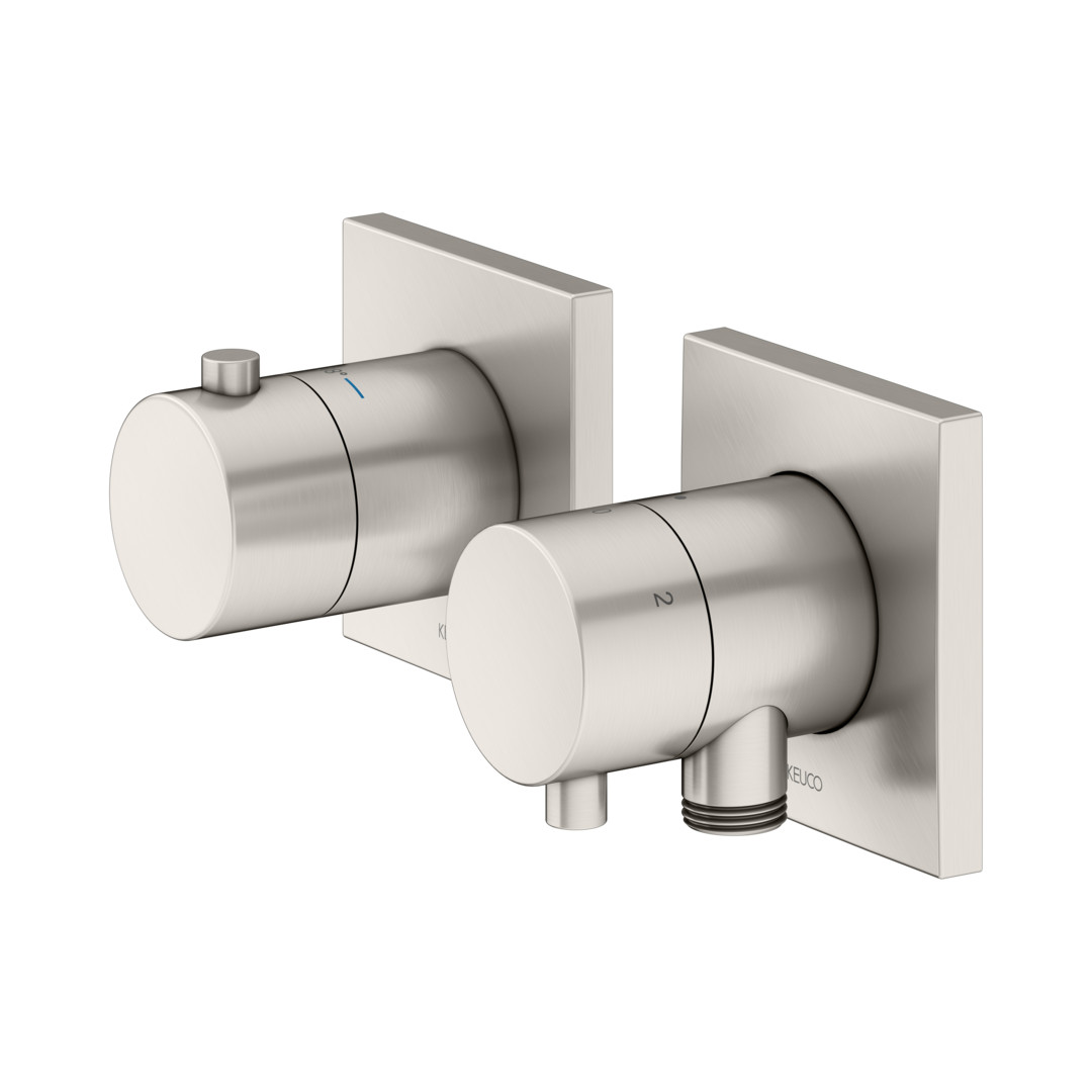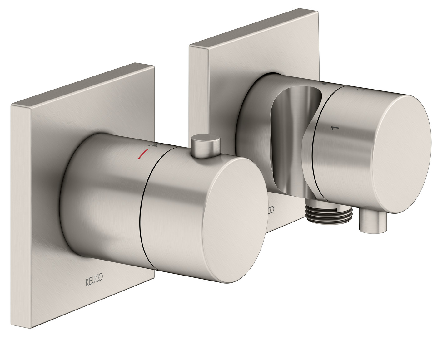 KEUCO Fertigmontageset Edition 11 Unterputz-Thermostatarmatur, Schlauchanschluss, Brausehalter, für 3 Verbraucher, nickel gebürstet