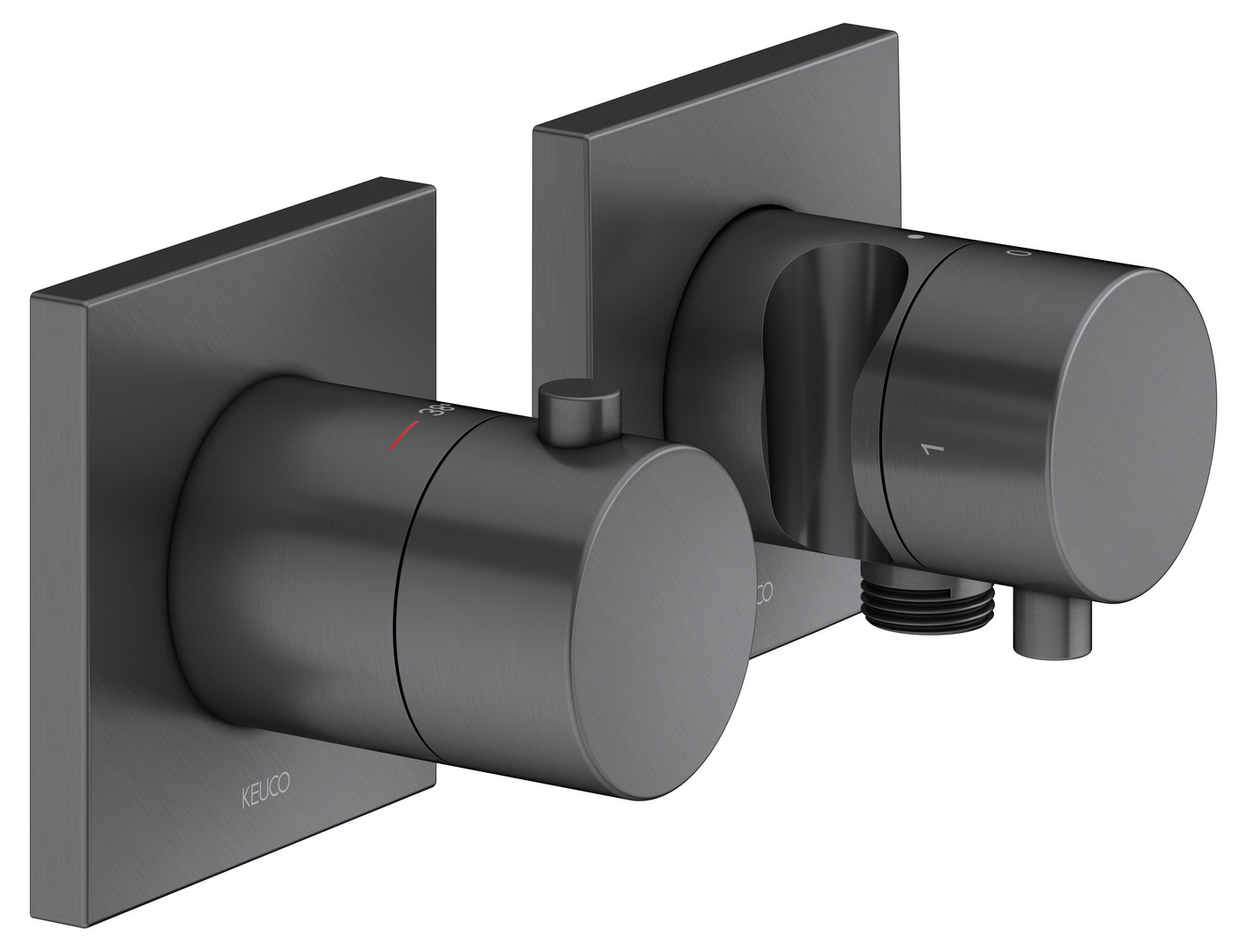 KEUCO Fertigmontageset Edition 11 UP-Thermostatarmatur, mit Schlauchanschluss, Brausehalter, für 2 Verbraucher, schwarzchrom gebürstet