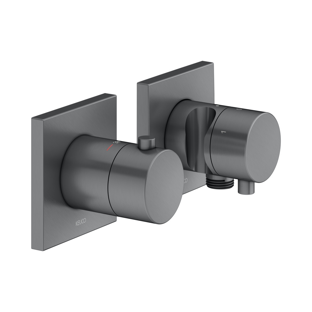 KEUCO Fertigmontageset Edition 11 Unterputz-Thermostatarmatur, Schlauchanschluss, Brausehalter, für 3 Verbraucher, schwarzchrom gebürstet