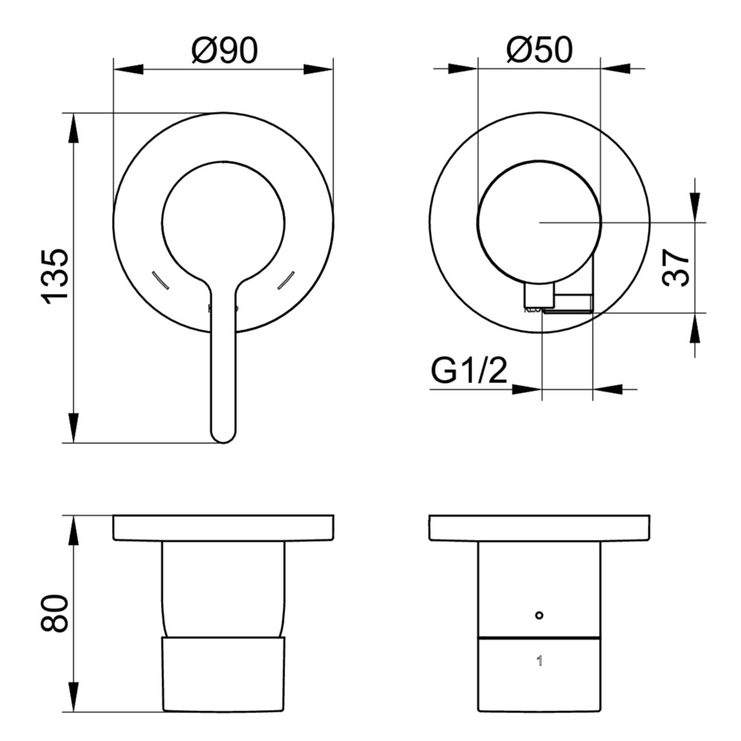 Rosettenform rund, Anschluss mit Grundkörper G 1/2, Mischwasserkartusche mit keramischen Dichtscheiben, mit Temperaturbegrenzung, Durchflussmenge 23 l/min, für Durchlauferhitzer geeignet, geräuschgeprüft