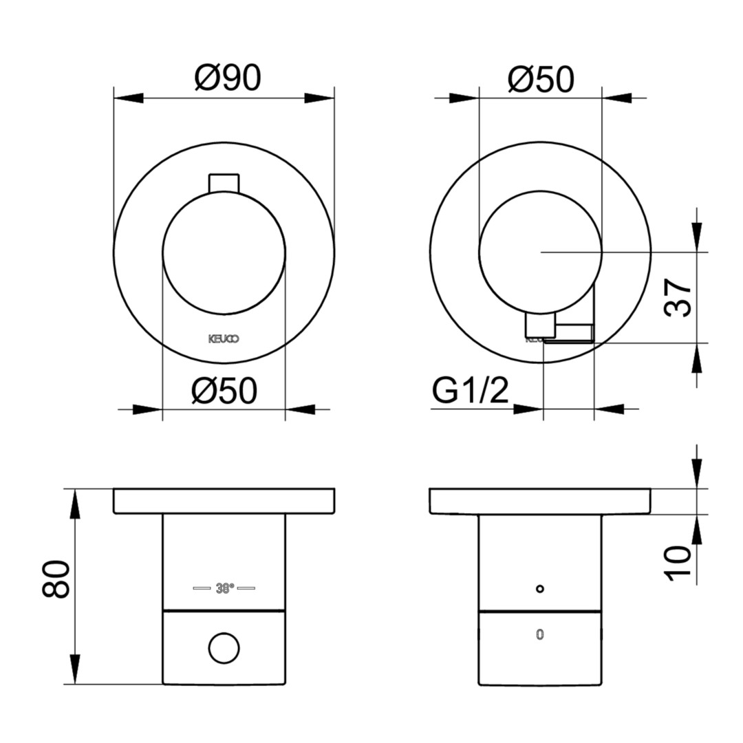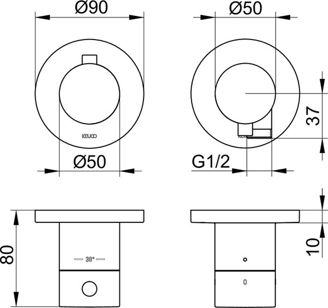 KEUCO Fertigmontageset Edition 400 UP-Thermostatarmatur, mit Schlauchanschluss, für 2 Verbraucher, verchromt