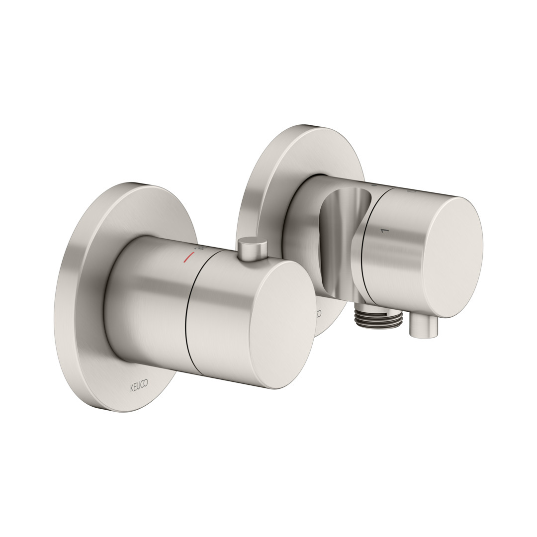 KEUCO Fertigmontageset Edition 400 UP-Thermostatarmatur, Schlauchanschluss, Brausehalter, für 3 Verbrauch, Nickel gebürstet KE51553051231